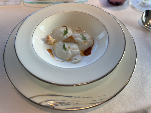 中には伊勢海老、生クリームと伊勢海老の卵から作るロワイヤルが入っているとのことで、