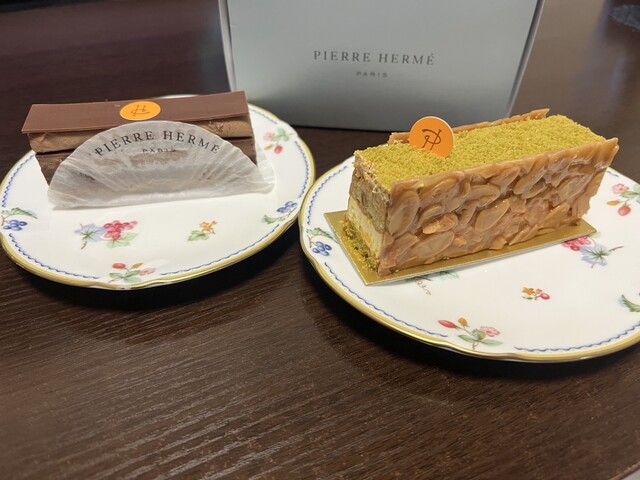 ピエール・エルメのスイーツは濃厚、かつ美味しい。そしてこのお皿もいいでしょ?笑