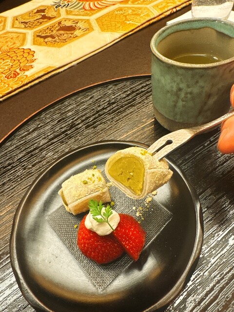 デザートはピスタチオ入りのうぐいす餅にあまおう