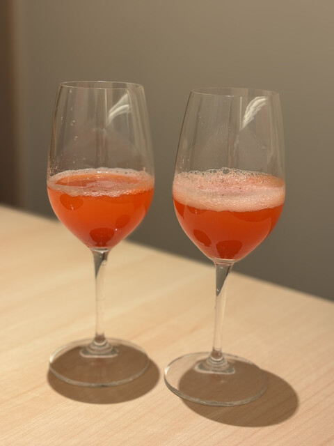 今季はいちごで、微炭酸とともにふわっと広がるみずみずしい香りが心地よく、最初の一杯から気分が上がります。