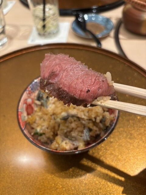 卵黄とマッシュルームのタレにくぐらせていただくと、洋風のすき焼きのような新しい美味しさに。