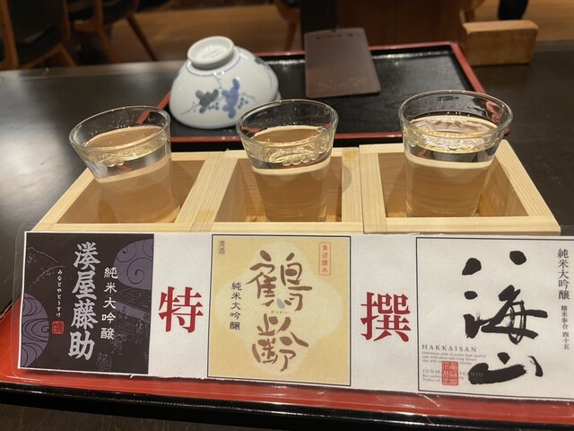 風情のある温泉宿で宿泊し、食事をしました。実は2回目です。夕食では、岩魚のお刺身を追加注文しました。飲み物は、まず「冬将軍」の濁酒、その後「飲み比べ」をいただき、最後は「湊屋藤助」で締めました。お料理はどれも美味しく、中でもご飯がやっぱり特別美味しいデザートの 柿の種でうさぎを模したアイスも格別でした