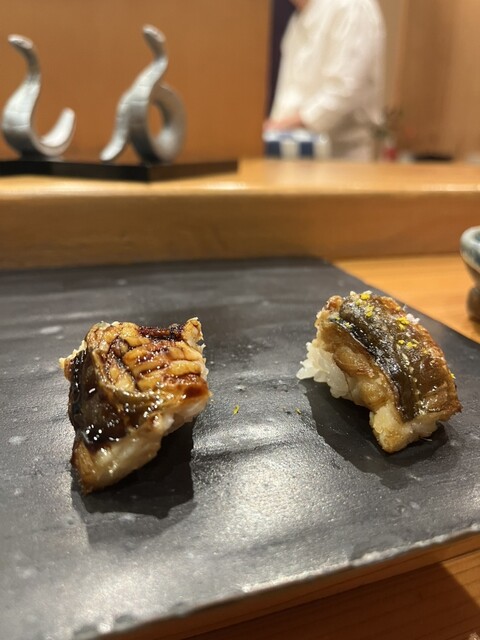 ・食べたお寿司の中でも1番印象的なのは火加減が素晴らしい、レアの才巻海老。完全にボイルされていない絶妙な舌触り、食感が海老の旨味を最大限引き出しており圧巻の一言。