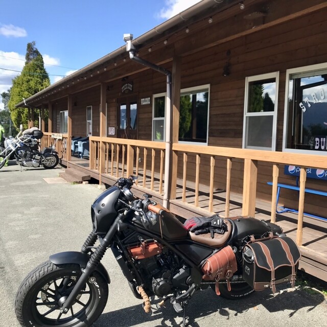 喫煙者も外のテラスで、バイクを見ながらゆっくり過ごせます。