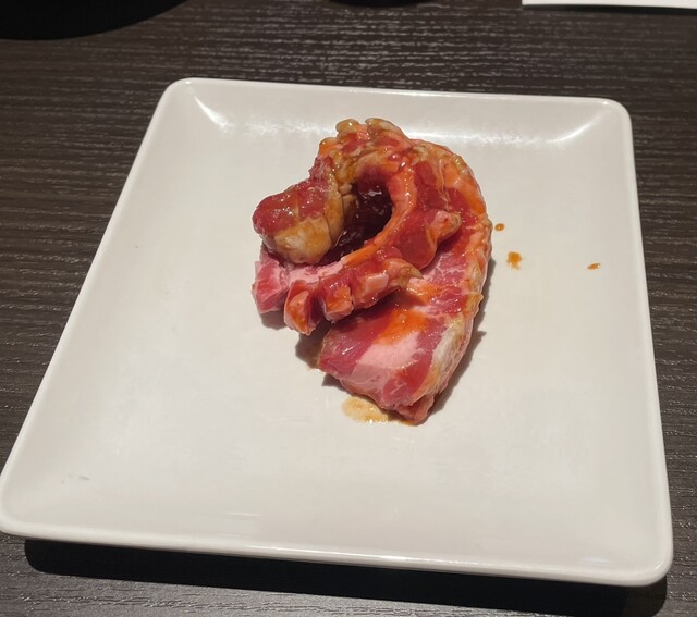 ワンカルビは1本長いカルビをハサミでチョキチョキ、切れ込みが入っているので柔らかく食べやすかったです。