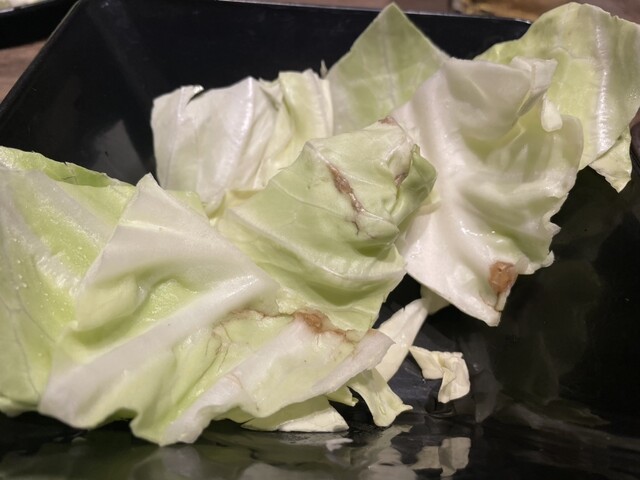 お野菜はちょっと難アリでしたかねー。お通しのキャベツは腐ってる部分があったり、トマトスライスのトマトはぐずぐずで、塩が振ってあったのでさらにどろどろとした感じでした。春キャベツは痛みやすいのは理解してますが、お通し代を取って、客に出すならもう少し気を配る必要があるのでは?と思いました。その日たまたまちゃんと仕込み出来てなくて、たまたま腐った部分が多いキャベツが来ただけだとは思いますが…。言ってもらえれば交換したのにと思われるかもしれませんが、、そういう気も起こらないくらいガッカリしたので言えませんでした。
