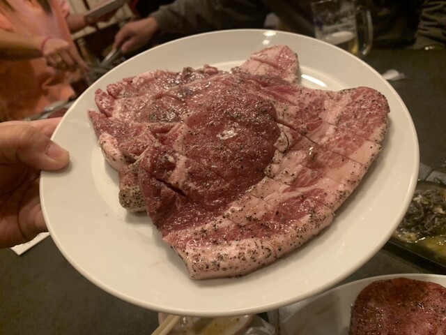 上塩タンをサッと炙りレモン汁にチョピっと付けてうまい!ここでおじさん達はカルビには行かず、ハラミと豚ロースステーキ!脂身少な目でも柔らかくジューシーでウマウマだよ!飲み物を赤霧炭酸割りにチェンジして臓物ゾーンへ!