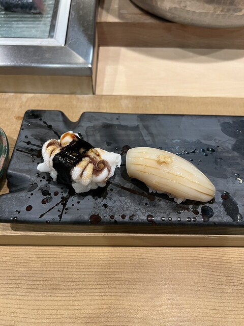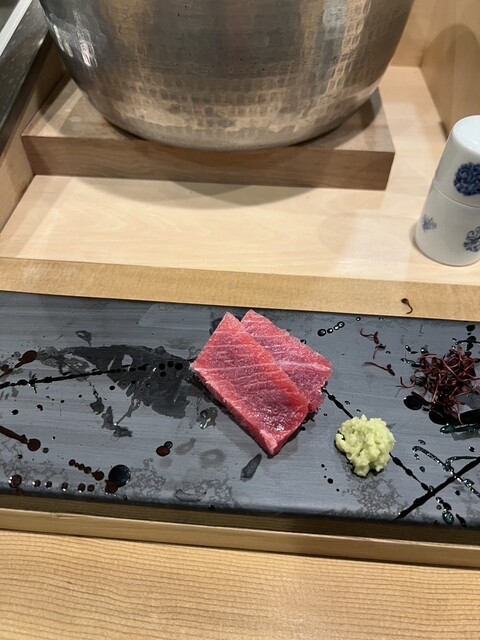 念願叶ってやっとすし乃なか西さんへ〜予約は必須ですよ!前もって19:30に予約を入れ当日定刻に着。無垢の一枚物の立派なカウンターに8席で先客さん2組、席に通され先ずは生ビールで乾杯〜先付に珍しい茹でフジツボと枝豆、まつした、金目、本鮪、葡萄海老とお刺身がどれも一級品で美味しい!多くの海老を食べてきたけど葡萄海老は別格中の別格‼︎これは日本酒でしょ〜握りも最高‼︎どれも、うぅぅ・・・と目を瞑り深く頷きながら美味い‼︎本当良い仕事◎ ここで土瓶蒸し登場⁉︎松茸‼︎もうあるんだ⁉︎と大将に聞いてみたらなんと⁉︎大将自ら山に入って採ってきたそうで(驚)山登りも趣味だそうです。※ご常連のお話だと9月のこのくらいに狙ってくると松茸に出会えるそうです。いやぁ〜お腹もいっぱいとっても美味しかった最高最高◎ これだけのコースが12,000円‼︎別途飲み物代ね!