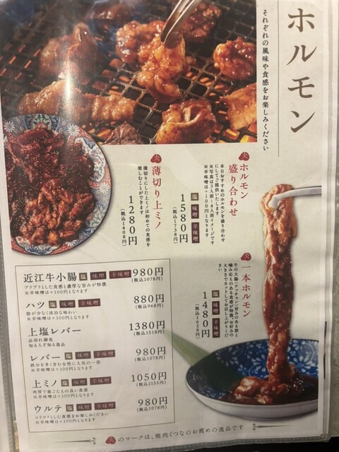 (みのてっさ昆布締め、さがり刺し、白センマイ、はつ刺し)