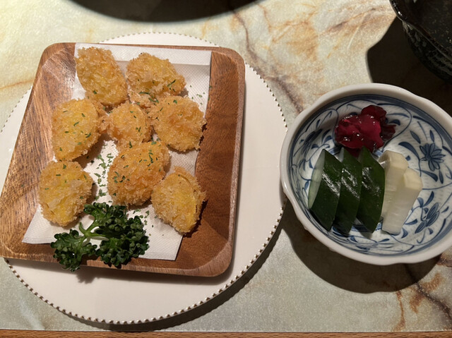 ツマミに季節限定の銀杏と、ニンニク揚げを注文。