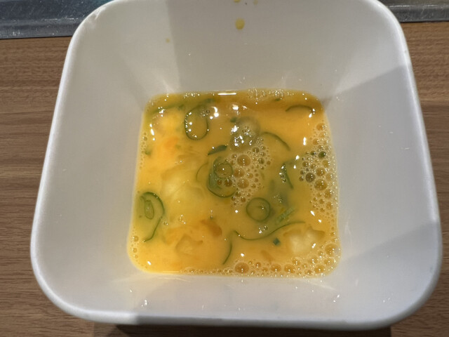 薄い卵の中に豚肉などの具材が包まれており、白醤油で味付けしたそう。