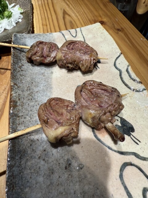 地鶏は熊野地鶏のプレミアム。タタキがとにかく絶妙な火入れで流石百名店です。ムネ、モモどちらも間違いなし。熊野地鶏が美味しいのか、店主の腕がいいのか、、、