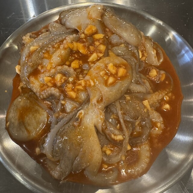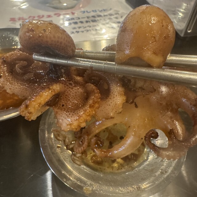 赤羽駅からすぐの「ミリネヤンコプチャン 赤羽店」で、本格的な韓国式ホルモン焼きを堪能しました。まず印象的なのは、迫力満点の牛ホルモン。中でもマルチョウは脂がぎっしり詰まっており、鉄板に置いた瞬間に炎が立ち上がるほどジューシー。香ばしい香りと濃厚な旨みで、一口食べればとろけるような食感が楽しめます。続いて牛タンは厚みがあり、噛むほどに肉の旨みが広がる歯応え抜群の逸品。ホルモンの脂の甘みと、タンのしっかりした食感とのコントラストが魅力です。