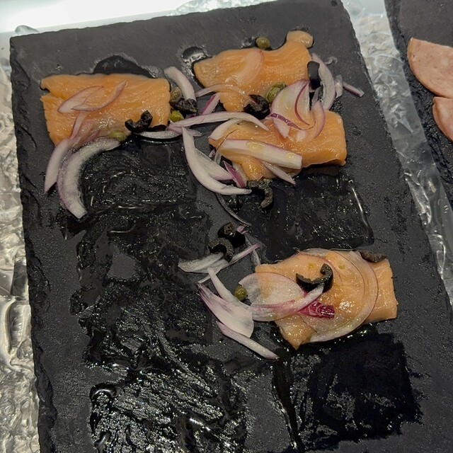 メインのご飯ものは、地魚の海鮮丼や柔らかなビーフカレーなど種類豊富。ライブキッチンでは、焼きたてケバブやふわとろのフレンチトーストも提供され、香ばしい香りが食欲をそそります。スモークサーモンやベーコン、彩り野菜のサラダなど洋食系も充実しており、どれも丁寧に仕上げられた上質な味わい。