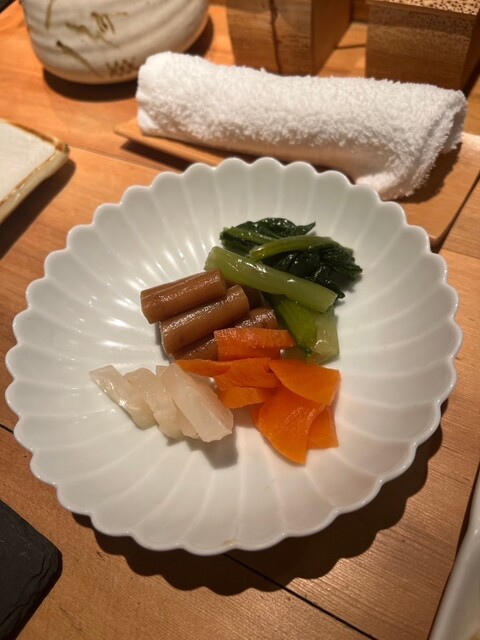 7本コースとポテサラ、漬物の盛り合わせでお腹ちょうど良かったです。