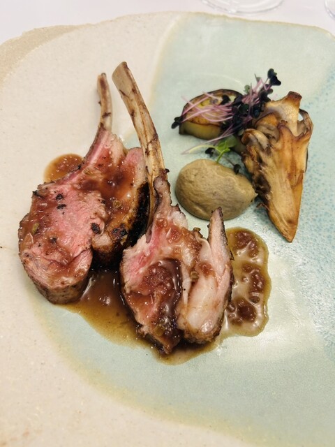 仔羊背肉の炭火焼き茄子と舞茸 実山椒のソース