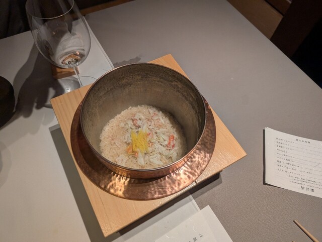 蟹の刺身。臭みゼロ。旨味が押し寄せて来ます。しゃぶしゃぶすると華のように身が開く。茹ですぎないように気をつけつつ頂きます。このお出汁も最高に美味しくて完飲しちゃいました。
