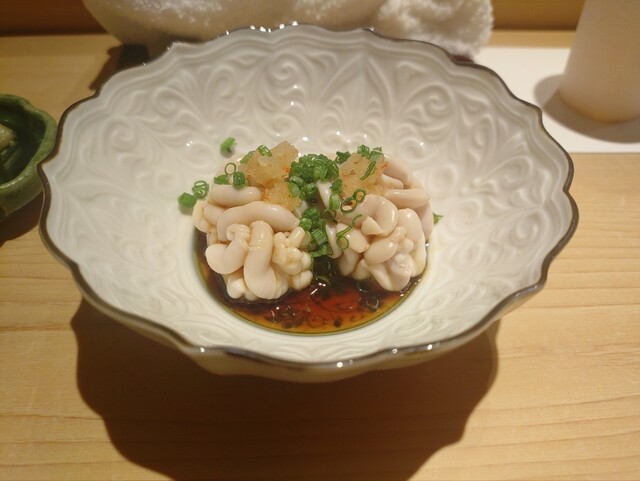 これが今回一番好きだったかもしれません。味としては想像するあなごです。ただ、温度、タレ、旨味全てが最高峰です。学がないので鰻の偽物というイメージしかありませんでしたがこんなに美味しい魚だったとは申し訳ありませんでした♂