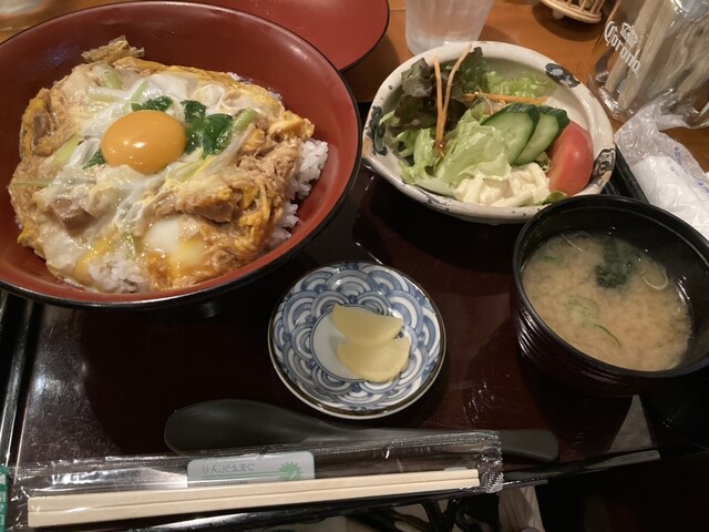 限定ランチ¥1,000 は売り切れでみんなで親子丼を! ご飯の量が選べ少にしましたがかなりの盛り具合。野菜サラダにはマカロニサラダ付き、、就寝前迄お腹が空きませんでした…