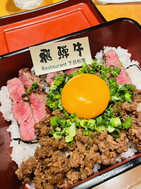 飛騨牛ステーキのみの丼とも迷いましたが、ずっとステーキを食べるのも飽きそうだと思いそぼろ付きにしましたが、個人的には正解でした。