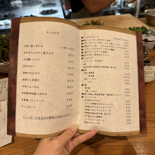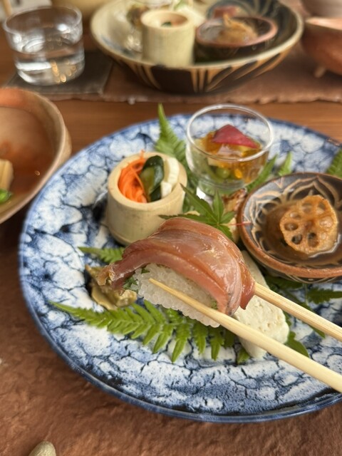 「どうまん蟹の窃盗」「鹿肉ロースト」「ハタの塩麹漬け唐揚げ」「えび入り卵焼き」「じゃこカツ」「鯖の棒鮨」「茄子の味噌がけ」「河内晩柑とトマトの盛り合わせ」でした◎