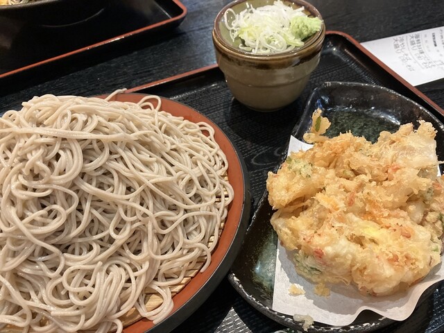 美味し〜い海鮮かき揚げと大盛りつけ蕎麦をいただきました。大食い目な私もさすがにお腹いっぱい過ぎて、蕎麦を少し主人に食べてもらうことに・・。