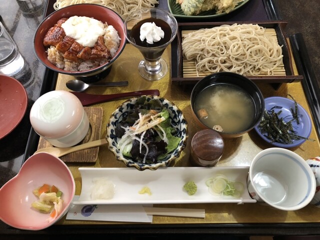 お昼の終わりの時間ぎりぎりに入店、お得なセットのミニ玉丼セットとあいもりの野菜天ぷらを注文しました!ミニを注文しましたが、玉子丼は、ご飯がぎっしり!お蕎麦は、大盛り!サラダや茶碗蒸しやコーヒーゼリーのデザート付き!味は全部美味しいので、気合いで完食しました!あいもりのうどんもかなりの大盛りで、天ぷらも美味しそうでした!美味しいお蕎麦とうどんをお腹いっぱいに食べたいならぜひ!メニューの金額もめちゃくちゃ安くて、おもうまい店に出ても過言ではないですよ!セットを注文するならまずは、ミニからをおすすめします!