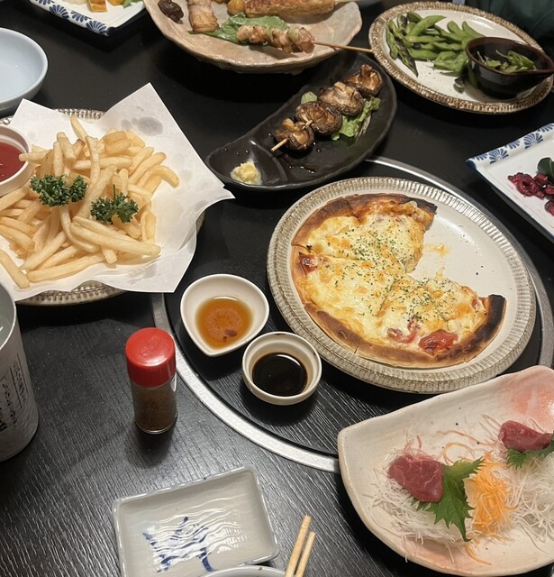 年始の3日と言うのもあり、どこも満席で入れるお店が無い中、少し待たせてもらい、とても落ちつく個室に案内してもらえました!メニューを見てびっくり!お刺身から揚げ物から麺類から何でもある居酒屋さん!味も美味しい!色々な物が食べられて、ゆっくり飲めて、良い新年会になりました!写真が酔っぱらってて全部食い散らかしですいません。吉四六のソーダ割を注文したらめちゃくちゃストレートみたいだったので一撃で酔いました(笑)