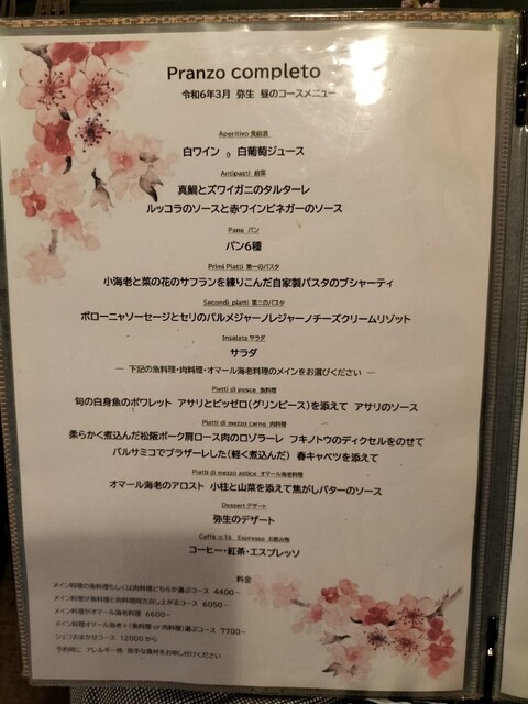 メイン料理の魚料理もしくは肉料理どちらか選ぶコース 4400円