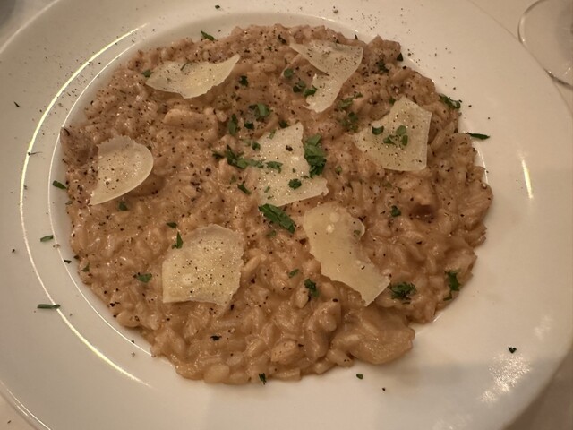 赤ワインをデキャンタで頼んで、気分良くなってポルチーニと栗のリゾットを追加で注文。