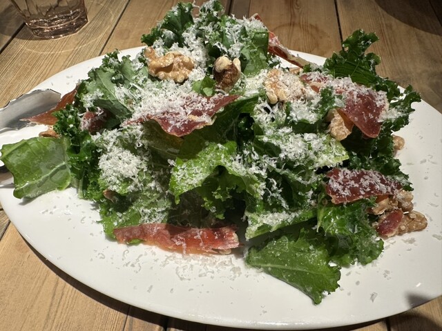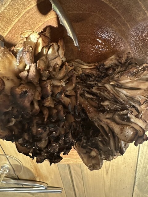 最初はケールサラダで罪悪感を消して、付け合わせのアスパラはポテト感覚で沢山食べて、キノコも味しっかりでこれでつまみになります。