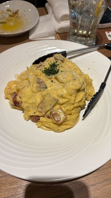 炭火焼きされたベーコンがさらに深い味を出していて、カルボナーラの重たさを感じさせない