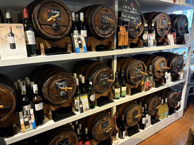 グラスワインは、樽に入ってるものから好きなものを注げるスタイル。ちょっとだけ試飲とかして、好みのやつを選びました♪