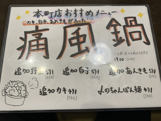 痛風鍋と日本酒をメインに初訪店!事前に痛風鍋鍋食べ放題を予約(飲み放題は会員のみ?)結構しっかり量もあり、あん肝もトロトロに溶け込んで美味しかったです!結構他の1品も頼んだのでオカワリは1回しかしなかったですが、締めの麺も含めお腹いっぱい美味しかったです。