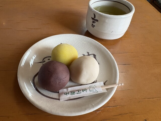 席に着くと、自動的にお茶とお団子が出てくる。