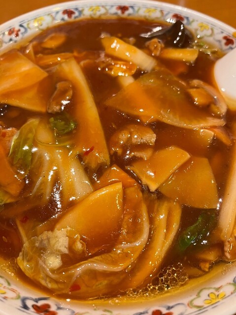 →あっつあつで、醤油ベースのスープもまろやかで美味しい。スープはまさに旨味の宝庫。サラサラ目の餡も最高に美味い。前回同様大変美味しく頂いた。