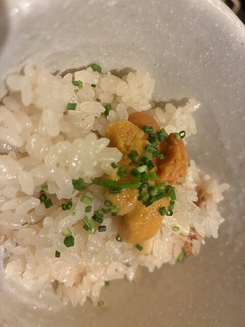 次は定番の雲丹と海苔を鉄板でしっかり焼いたパンと共に一口で。