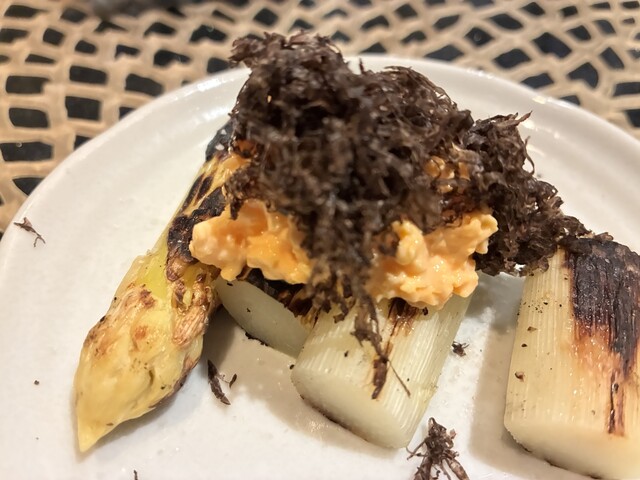 魚は真っ赤な炭で皮を燻してからいただきました。タレとの相性抜群。