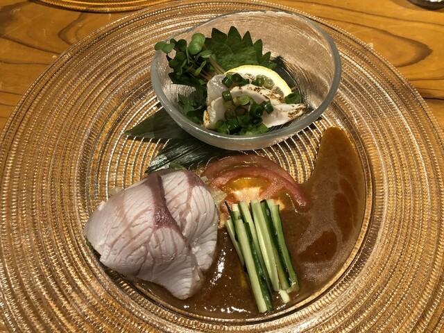 お料理も繊細かつしっかりと調理されており、どれも満足の行くお味でした!鰤しゃぶは独特のソースとピッタリでした。粕汁で仕上げたおでんは、最高でした。お肉も3種類のお手製ソースと絡めて絶品です。締めの鯛茶漬けも出汁が効いていて、美味かった〜〜。