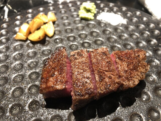 食材を、活かし切るって感じの素晴らしい品々です。毎回、違うお料理を楽しませてくれる唯一無二の鉄板焼屋さんです。今日は時間的に余裕があり、シャトーブリアンをニンニクスライスに絡ませて、蓋をしてゆっくりと熱を入れる手法で、最高のお肉を頂きました。