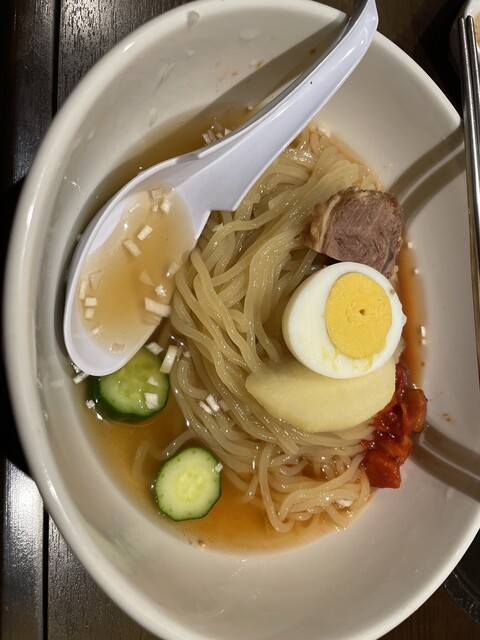 という事で、1軒目の居酒屋でいい感じで食べ飲みしていたのですが、お腹と相談してせっかくならばと冷麺をいただきにこちらのお店へ。