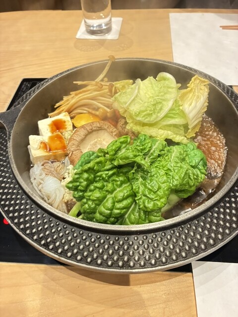 メインのすき焼きはA5黒毛和牛の旨みが濃く、割り下とのバランスも上品で、卵につけるたび幸せが増していく感じ。