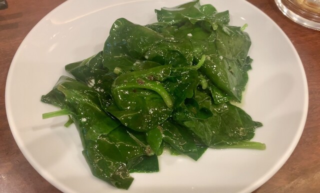 夏季だけ提供される「田七(テンチー)」の炒めを。6月末から始まったメニュー。店の屋上で栽培されているので実に新鮮笑 モロヘイヤに似た粘りがあり、ニンニクが利き、これはスタミナがつきそう。