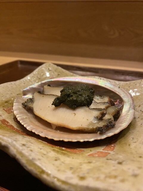 →巨大な黒鮑を贅沢に米粉揚げで。プリッとし歯応えある食感に柚子の香りが堪らない。下にはもち米が隠れていて、味のコンストラストが良かった。