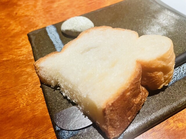 同時に提供される自家製パンには、残ったキャビアソースをつけたり、店主の出身地・志賀島の特産であるわかめを使った海藻バターを添えられています。