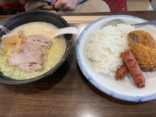 そして頼れる相棒は「豚骨ラーメン&常陸牛メンチ」を発注!