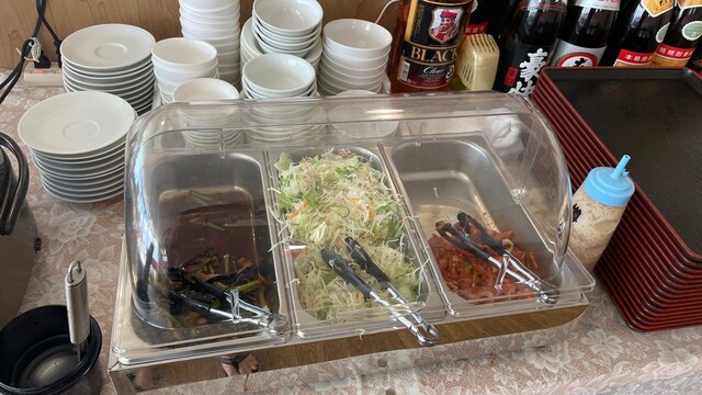 なんと!ライス、スープ、キムチ、サラダ、ナスの味噌麻婆 (この辺は日替わりの部分もあるのかな?)がおかわり自由!