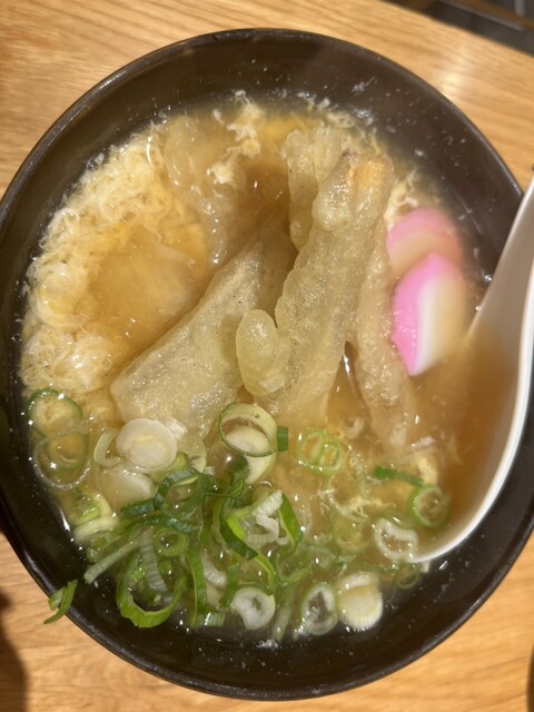 ごぼうサクサク(確か5枚くらいなのでダブルごぼう有り)、出汁は優しい味で飲める飲める、麺は柔らか麺と思いきやモチっとした食感でつるつる。稲庭うどんを少し太くそして平たくした感じかな。コシのある麺が好きな方には合わないかもですが、私にはストライクでした。スープが美味しくて最初に沢山頂いたから?お腹いっぱいになりました。友人の頼んだ〝かしわご飯〟もひと口頂きましたが、これまた美味しかったです。