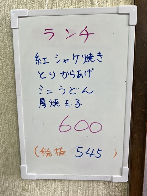 本日のランチ本日のランチ ベニシャケ焼き とりからあげ ミニうどん 厚焼き玉子(600円)