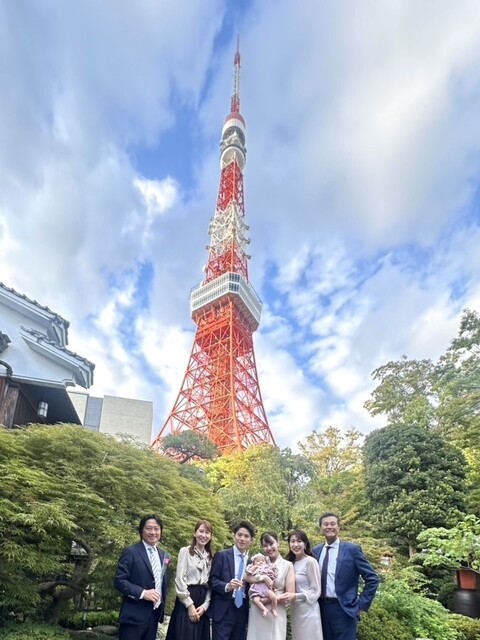 日本庭園の紅葉を愛でながらお食い初め